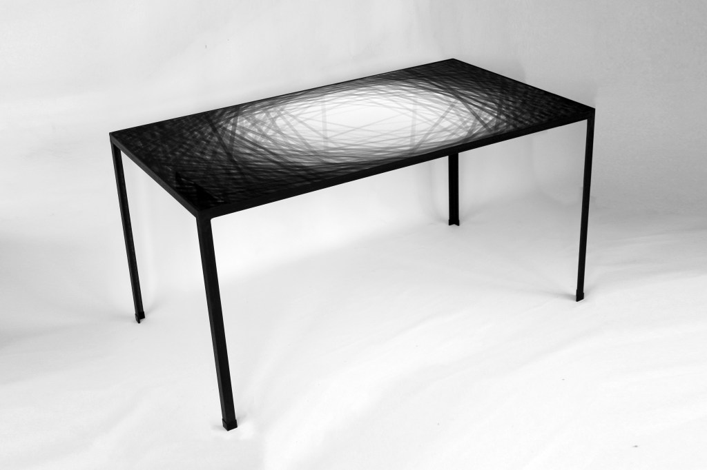 140 cm x 90 cm. Darüber ESG Optiwhite Sicherheitsglas. Gestelle sind aus Holz, brüniertem oder lackiertem Stahl (z.B. RAL), Edelstahl und Messing erhältlich. Höhen z.B. in 103 cm, 73 cm, 35 cm oder 0 cm erhältlich. Sonderanfertigungen auf Anfrage, Toleranzen von 1 cm möglich.